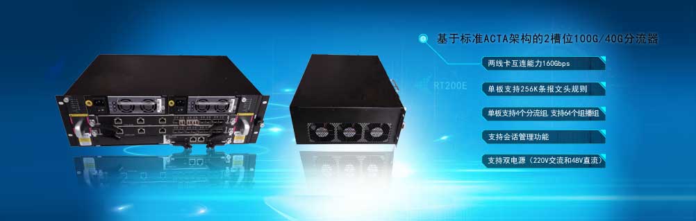 RT200設備是一款支持網絡行為審計系統(tǒng)、網絡內容審計系統(tǒng)和入侵檢測系統(tǒng)的高速流量預處理平臺。